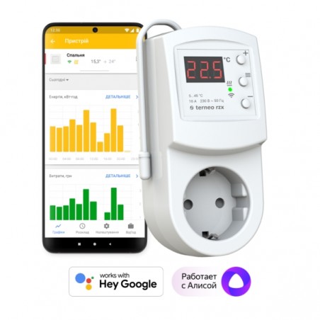 Управляйте отоплением из любого места с помощью приложения terneo или голосом через Яндекс Алису и Google Assistant. Для работы со статистикой по группе терморегуляторов удобно использовать приложение для компьютера. Получите мгновенный доступ к температуре вашего дома, динамике нагрева и отчетам потребления энергии в кВт-часах и деньгах.